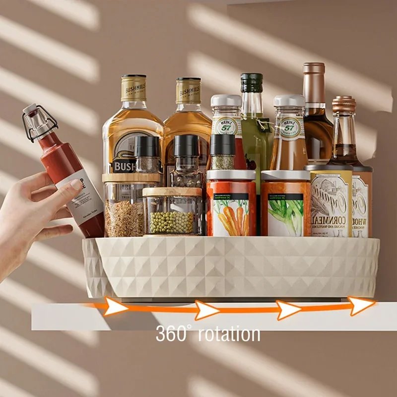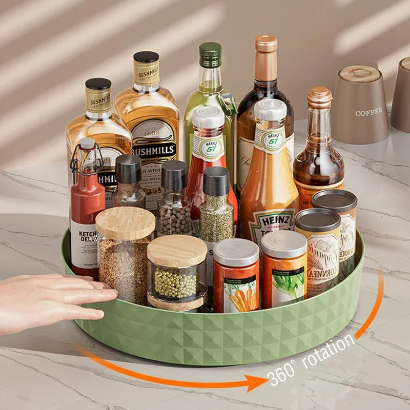 Deslizamento fácil - 360° Rotação: A parte inferior é antiderrapante e estável, e a mesa giratória gira sem escorregar, permitindo acessar facilmente frascos de temperos, frutas e vegetais ou cosméticos e produtos para a pele de qualquer ângulo.