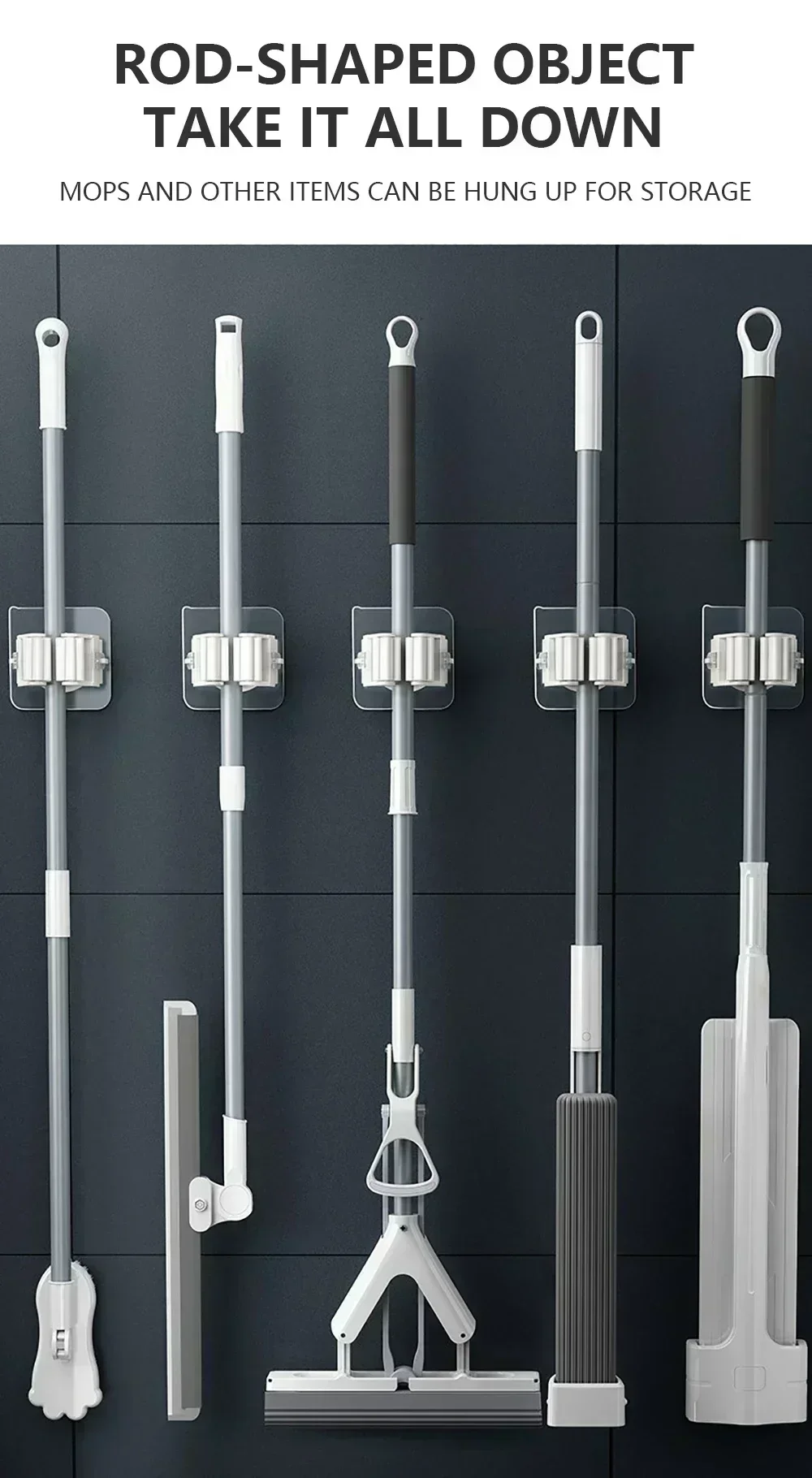1 suporte para esfregão Durável e resistente: organizador de ferramentas com suporte de esfregão adesivo forte, pode aderir a superfícies lisas com queda.