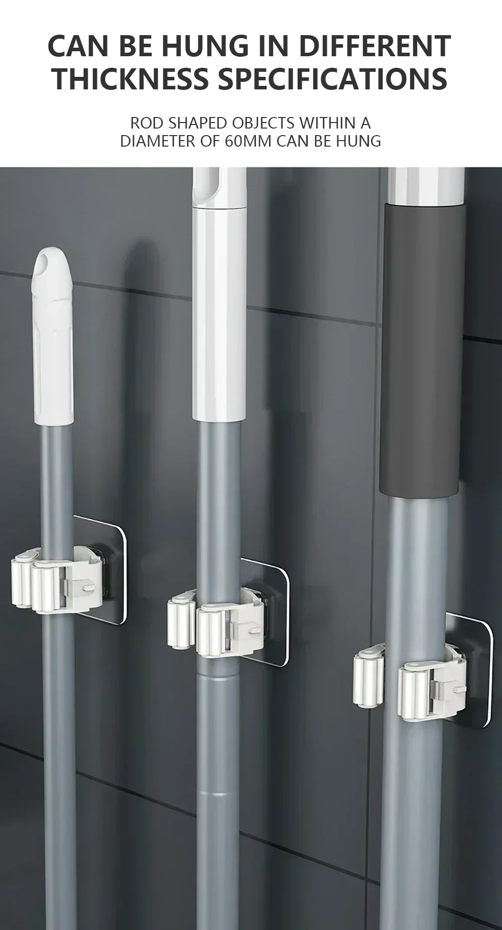 3 Multiuso: o clipe pode aceitar diâmetro de até 3cm, você pode usá-lo para organizar esfregões, vassouras, guarda-chuvas etc.