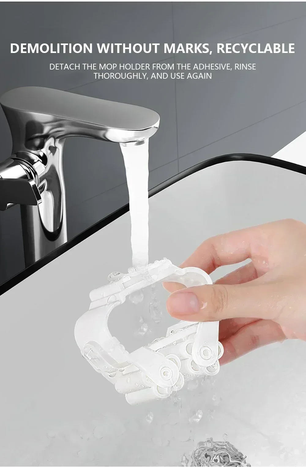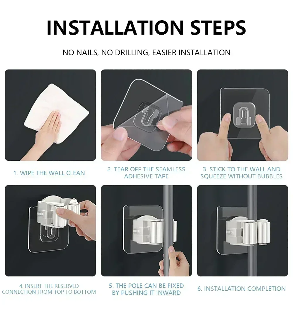 4 Suporte para esfregão Fácil instalação: sem necessidade de ferramentas ou brocas, basta descascar e colar, sem danos ou manchas nos móveis e na parede.